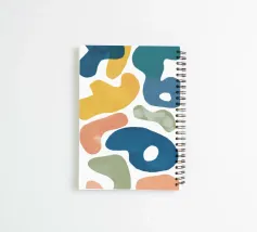Une collection de formes lisses et abstraites, semblables à des galets, dans une palette agréable de blanc, de jaune, de sarcelle et de bleu, créant un motif ludique et moderne, à la fois organique et graphique.