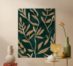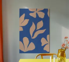 Une composition saisissante de style cyanotype capturant de délicates feuilles blanches dérivant sur un champ indigo profond. Cette pièce évoque les premières photographies botaniques avec une touche contemporaine - à la fois organique et graphique, intemporelle et moderne. Parfaite pour les intérieurs qui penchent vers le naturalisme minimaliste ou l'esthétique scientifique vintage.