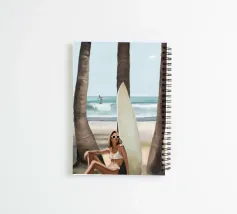 Peinture numérique chic d'une femme se prélassant à l'ombre avec une planche de surf, encadrée par des palmiers et une vue calme sur l'océan. Un surfeur glisse au loin, capturant le rythme détendu de la vie à la plage. Cette œuvre d'art allie le soleil, le surf et un style sans effort. Elle est parfaite pour la décoration côtière, les intérieurs modernes et les amoureux de la culture du surf. Idéal pour les chambres à coucher, les maisons de plage ou les studios. Un cadeau attentionné pour les âmes de l'océan et les amateurs de scènes estivales chaudes et minimales.
