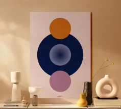 Trois cercles, trois couleurs, un équilibre serein : ce poster moderne présente une composition verticale de surfaces colorées superposées et transparentes en rouge, orange et violet. Les chevauchements doux créent de la profondeur et de l'harmonie - idéal pour les intérieurs modernes, les espaces de travail créatifs ou les murs d'art minimalistes avec un accent de couleur.