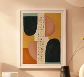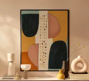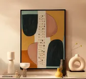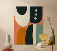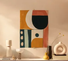 Apportez une touche moderne à votre décoration intérieure avec cette impression artistique abstraite encadrée en bois. Parfaite pour le salon, cette œuvre d'art combine des formes géométriques dans des teintes chaleureuses et apaisantes, créant une atmosphère contemporaine et accueillante.