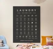 Blanchisserie, Guide des symboles d'entretien en noir - Buanderie poster avec cadre en aluminium