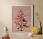 Un arbre de Noël abstrait rose et or, élégant, féminin et festif. Une version moderne de la tradition des fêtes de fin d'année.