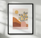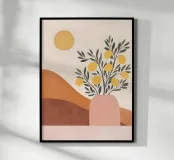 Insufflez du calme dans votre espace avec cette plante de citron sereine dans un vase blush, entourée de collines abstraites et d'un chaud soleil d'automne. Alliant charme bohème et vibrations minimalistes, cette œuvre d'art convient aussi bien aux coins yoga qu'aux cuisines douillettes et aux salles de bains ensoleillées. Une pièce intemporelle pour la luminosité de l'été et la chaleur de l'automne.