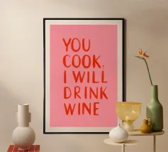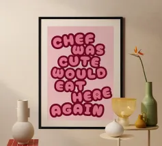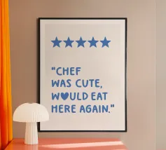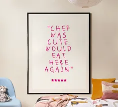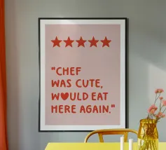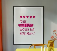chef was cute, review quote, typography poster avec cadre en aluminium