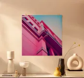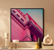 Conception architecturale moderne d'un bâtiment rose vif poster avec cadre en plastique