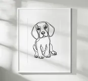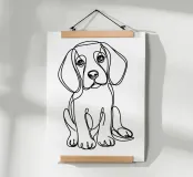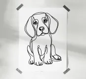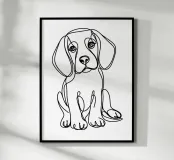 Dessin au trait d'un chien beagle poster avec cadre en bois