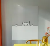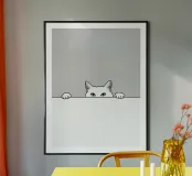 La curiosité ludique d'un chat qui jette un coup d'œil dans ce dessin au trait minimaliste. Une œuvre d'art abstraite moderne qui symbolise le mystère, l'espièglerie et la nature curieuse des félins.