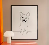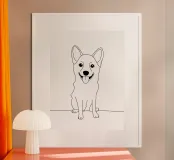 Dessin minimaliste d'un chien heureux | Modern Abstract Art poster avec cadre en bois