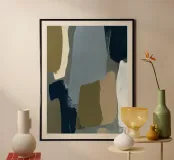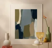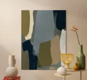 Une peinture abstraite moderne composée de blocs de couleurs organiques superposés en douceur. Des tons discrets de bleu ardoise, bleu marine profond, vert olive, sable chaud et blanc cassé se chevauchent dans un rythme vertical apaisant. Les coups de pinceau sont détendus et mats, avec une texture subtile qui donne de la profondeur à la surface sans bruit visuel. Neutre mais expressive, cette œuvre semble ancrée et contemporaine, ce qui la rend facile à intégrer dans des intérieurs modernes, minimalistes, scandinaves ou naturels. Idéale pour les salons, les chambres à coucher ou les espaces de travail où l'on recherche un sentiment d'équilibre, de retenue et de sophistication tranquille.