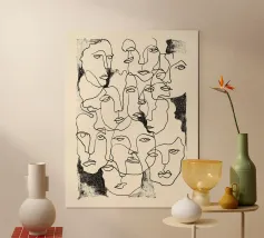 Ajoutez une touche moderne et artistique à votre espace avec cette impression artistique en bois ‘Faces’ par Ninhol. Ce design minimaliste met en avant des visages stylisés, parfait pour les amateurs de décoration contemporaine. Que ce soit pour votre salon, votre bureau ou une chambre, cette œuvre saura attirer l’attention et susciter des conversations. Avec sa taille de 10 x 15 cm, elle s'intègre facilement dans n'importe quel décor. Cerise sur le gâteau: cette impression légère est facile à accrocher et à déplacer à votre guise. Ne manquez pas l’occasion de personnaliser votre intérieur avec un style unique et audacieux !