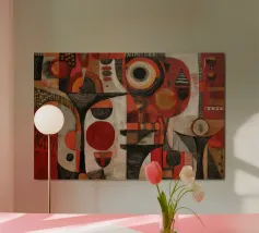 Une composition abstraite avec des formes audacieuses et des couleurs vibrantes. La peinture crée un sentiment de mouvement dynamique et d'énergie.