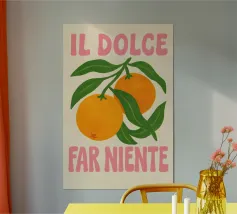 Apporte la sérénité sicilienne sur ton mur ! "Futtitinni" - l'expression charmante pour "laisse-toi aller" ou "ne te prends pas la tête" - rencontre des couleurs vives dans un style typographique rétro. Une statement piece au flair méditerranéen pour tous ceux qui ne prennent pas la vie trop au sérieux.