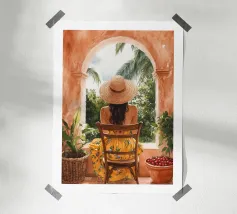 Apportez une touche d'élégance à votre décoration intérieure avec cette impression artistique en bois encadrée, représentant une belle silhouette relaxante sous un chapeau ample. Parfaite pour le salon ou la chambre, elle évoque un style moderne et contemporain.