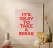 Prenez soin de vous grâce à cette impression typographique saisissante. Un lettrage rouge audacieux, dessiné à la main, sur un fond rose doux, rappelle avec force qu'il faut faire une pause et se ressourcer. Parfait pour les bureaux à domicile, les chambres à coucher ou tout espace ayant besoin d'une touche d'encouragement. Le contraste vibrant et le style de lettrage unique créent une pièce visuellement attrayante qui se démarque. Cet imprimé associe un design moderne à un message réconfortant, ce qui en fait un cadeau idéal pour vos amis, votre famille ou vous-même. Ajoutez une touche de couleur et de positivité à vos murs avec cette œuvre d'art accrocheuse.