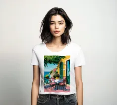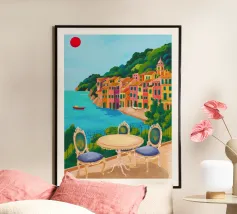 Une terrasse, un bord de mer, un joli village aux couleurs douces ... la véritable Dolce Vita.