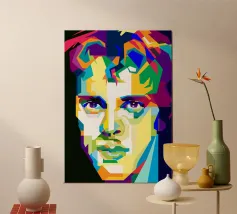 homme sur fond coloré mettant en valeur l'expression artistique poster