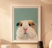 Mignon cochon d'Inde noir et blanc illustré dans un vert clair. poster avec cadre en aluminium