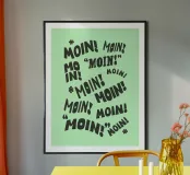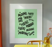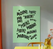 Commencez votre journée par un joyeux "Moin !" grâce à notre impression typographique vibrante. Ce charmant dessin présente le sympathique message allemand répété dans différentes polices lettrées à la main, créant ainsi un motif visuellement attrayant. Le lettrage gris froid se détache sur un fond vert vif, insufflant énergie et positivité à n'importe quel espace. Parfait pour les passionnés de langues, les germanophiles ou tous ceux qui apprécient le bonjour, cet imprimé ajoute une touche internationale à votre maison ou à votre bureau. Disponible sur plusieurs produits, c'est le moyen idéal d'emporter avec soi un peu de charme allemand !