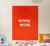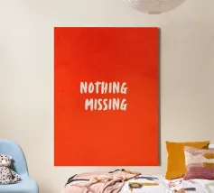 Une œuvre typographique minimaliste sur fond chaleureux et texturé. « Nothing Missing » est une affirmation discrète de plénitude et de satisfaction, un rappel que tout ce dont vous avez besoin est déjà là. Conçue pour apporter chaleur, simplicité et sérénité aux intérieurs modernes, des espaces de vie aux studios créatifs.