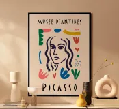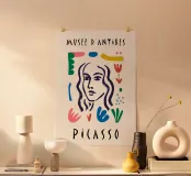 Plongez dans la créativité vibrante de Pablo Picasso grâce à cette étonnante affiche du Musée d'Antibes. Le dessin abstrait central représente un visage entouré d'une collection vivante de formes abstraites colorées dans différentes teintes audacieuses. Cette affiche capture l'énergie et l'expérimentation ludique du style moderniste tardif de Picasso. Elle est parfaite pour ajouter une touche artistique de la Côte d'Azur et un art abstrait expressif à votre espace. Disponible sous forme d'impression numérique de haute qualité à une résolution impressionnante de 7000x5000 pixels et 300 dpi, garantissant des lignes nettes et des couleurs éclatantes.