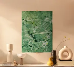When painting this abstract piece, I was very inspired by the bright green leaves of Pteridium, which grow all around me in the spring. Let my colorful artwork bring a piece of nature to your home interior 🌿