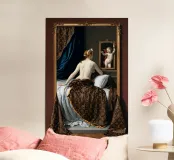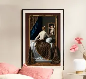 Renaissance Rebel présente cette œuvre d'art exclusive, en édition limitée, inspirée de La Venus del espejo (La Vénus de Rokeby) de Diego Velázquez. Un luxueux tissu monogrammé drape le dos d'une femme qui se regarde dans un miroir, où un chérubin se reflète de manière ludique. La fusion de l'élégance classique de la Renaissance et du luxe moderne crée un contraste saisissant, parfait pour les collectionneurs qui apprécient les pièces audacieuses et qui poussent à la réflexion. Cette réimagination surréaliste du chef-d'œuvre de Velázquez est disponible uniquement sur Juniqe en quantités limitées, offrant une beauté intemporelle avec une touche de modernité.