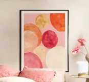 A playful yet serene abstract painting with soft, rounded forms and warm hues. This artwork brings a sense of harmony and lightness into any room.