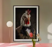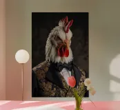 Sir Cluckington, le coq pimpant, se tient droit dans son costume finement ouvragé, orné de luxueuses broderies dorées. Avec son attitude fière et son regard acéré, Sir Cluckington incarne l'élégance et la classe, ce qui en fait le symbole parfait de la noblesse. Ce portrait, qui fait partie de la collection Beasts of Nobility, apportera une touche de charme raffiné à n'importe quel espace. Ajoutez cette œuvre d'art sophistiquée à votre intérieur et laissez le flair aristocratique de Sir Cluckington transformer votre décor.