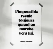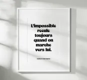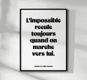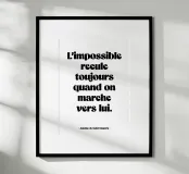 Inspirez votre quotidien avec cette affiche élégante reprenant la célèbre citation d'Antoine de Saint-Exupéry : "L'impossible recule toujours quand on marche vers lui." Parfaite pour un bureau, un salon ou une chambre, elle apporte une touche de motivation et de réflexion à votre décoration intérieure.