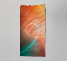 Des courbes tourbillonnantes dans de doux dégradés d'orange et de sarcelle créent un motif abstrait. Cet arrière-plan présente un effet de spirale apaisant qui mélange les couleurs de façon homogène.