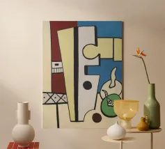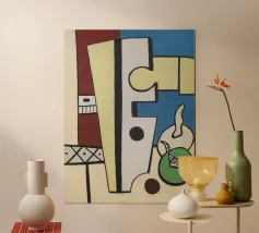 Plongez dans la géométrie audacieuse de la "Nature morte bleue et jaune" de Fernand Léger, datant de 1938. Cette œuvre captivante illustre la maîtrise des formes abstraites de Léger, avec un jeu saisissant de bleu, de jaune et de rouge aux côtés de tons neutres et de contours noirs prononcés. La composition crée un rythme visuel dynamique, caractéristique de son style moderniste unique. Cette impression numérique haute résolution, de 7000x5000 pixels à 300 dpi, reproduit méticuleusement les couleurs vives et les détails précis de l'original, ce qui en fait un complément exceptionnel pour les collectionneurs d'art et les amateurs d'histoire de l'art.