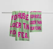Toutes les serviettes sont fabriquées et imprimées par un partenaire local qui a fait ses preuves.