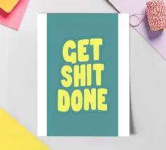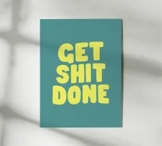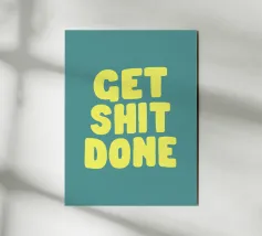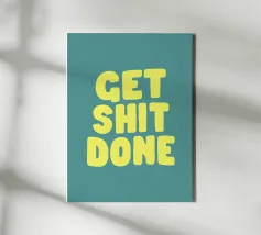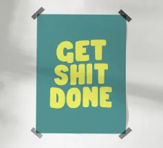 Get Shit Done est une typographie audacieuse et accrocheuse qui allie humour impertinent et motivation. Le lettrage jaune dessiné à la main se détache sur un fond vert pastel apaisant, créant un contraste visuellement saisissant. Cette œuvre d'art ludique mais puissante sert de rappel quotidien pour rester concentré et productif. Il est parfait pour les bureaux à domicile, les espaces de travail ou toute autre zone nécessitant un regain d'énergie et de détermination. Les couleurs vives et le style informel en font un cadeau idéal pour les fonceurs, les entrepreneurs ou toute personne cherchant à ajouter une touche d'audace à son décor.