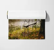 J'ai découvert ce banc isolé au bord d'un petit lac. J'ai pris cette photo au début de l'automne, alors que quelques feuilles vertes étaient encore accrochées aux arbres. Malgré cela, l'image transmet une belle ambiance automnale. Idéal comme poster sur le mur du salon ou de la chambre à coucher. Aussi comme décoration dans l'appartement ou la maison de vacances. :)
