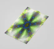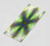 Étoile à 5 branches avec des formes décorées dans les couleurs vert-jaune-bleu.