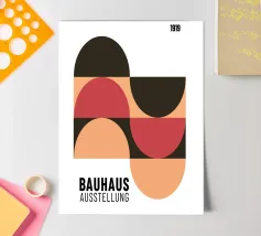 Ce motif Bauhaus abstrait au graphisme clair présente un motif rythmé de triangles et de carrés d'un rouge vif sur un fond crème chaud. L'agencement strictement géométrique crée un équilibre captivant de dynamisme et d'ordre et rappelle les principes classiques du design Bauhaus et Midcentury. Grâce à l'utilisation délibérée du contraste et de la répétition, le motif est à la fois moderne, intemporel et architectural. La palette de couleurs réduite confère au design calme et force, sans perdre de son expressivité. Idéal comme tableau mural pour le salon, poster design, art mural moderne.