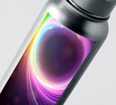 Stickers en film PP/PET avec laminage de protection et différentes structures de surface.