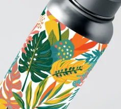 Stickers en film PP/PET avec laminage de protection et différentes structures de surface.