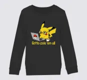 Un adorable Pikachu binoclard, portant des lunettes et concentré sur son ordinateur portable, avec la phrase amusante "Gotta code 'em all". Cette œuvre d'art mêle l'univers de Pokémon au monde de la programmation, créant un jeu de mots parfait pour les développeurs et les fans de culture pop. Idéal pour les programmeurs, les joueurs et les collectionneurs qui aiment combiner l'humour, la nostalgie et la technologie dans leur style.