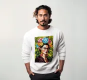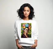Découvrez Frida Kahlo réimaginée dans cette extraordinaire affiche d'art texturée, qui rappelle un travail à l'aiguille ou un perlage complexe. Ce portrait unique représente Frida avec son mono-sourcil emblématique et son regard intense, rendu avec un aspect tactile fascinant créé par d'innombrables petits éléments vibrants. Sa coiffe florale élaborée éclate avec des fleurs colorées en rose, bleu, orange et jaune, sur un riche fond vert feuillu. Cette œuvre d'art numérique de haute qualité, méticuleusement réalisée à 7000x5000 pixels en 300 dpi, offre des détails époustouflants et une expérience visuelle vraiment unique, parfaite pour une exposition.