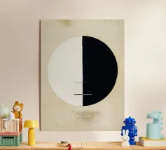 Explorez la profonde dualité de l'œuvre d'Hilma af Klint "Buddha's Standpoint in the Earthly Life No. 3" (1920). Cette œuvre abstraite saisissante présente un puissant cercle noir et blanc divisé par de subtiles lignes horizontales, symbolisant l'équilibre, l'opposition et les principes fondamentaux de l'existence. L'art abstrait spirituel de Klint, pionnier en la matière, invite à la contemplation de l'harmonie universelle. Notre poster numérique de qualité supérieure, d'une résolution époustouflante de 7000x5000 pixels et 300 dpi, reproduit impeccablement les textures subtiles et la profonde simplicité de l'œuvre, offrant une pièce exceptionnelle à tout amateur d'art à la recherche d'une œuvre minimaliste mais signifiante.