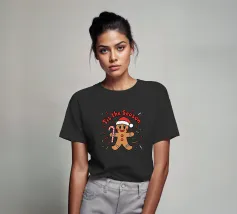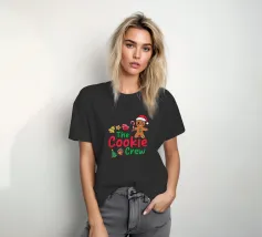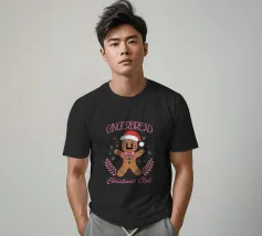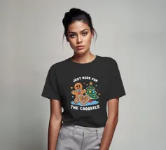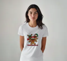 Deux biscuits de pain d'épice souriants sont habillés en tenue de fête, l'un portant un chapeau de Père Noël et l'autre tenant une pomme. La phrase "J'enseigne aux biscuits les plus intelligents du lot" est imprimée autour d'eux, ajoutant un thème ludique et éducatif.