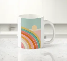 Cette illustration délicate montre un arc-en-ciel aux couleurs pastel avec de doux dégradés de bleu clair, de rose, de jaune pastel et de vert clair. Des lignes géométriques et des rayures structurées confèrent à ce travail de design graphique une note moderne et reflètent la nature. Un jeu harmonieux de couleurs qui respire la sérénité et la joie.