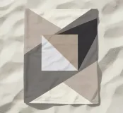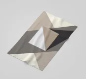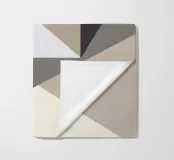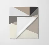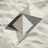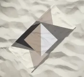 Geometric shapes in neutral tones create an abstract composition with overlapping triangles and a central square. The interplay of light and shadow adds depth to the minimalist design.