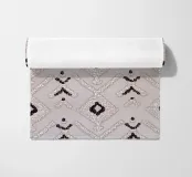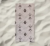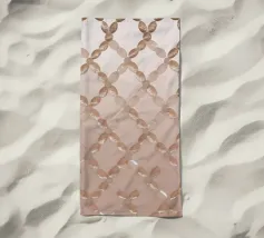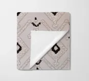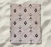 Dieser elegante, orientalische Weberei Illustration vereint moderne und vintage Elemente mit symmetrischen Rautenmuster in sanften Pastell- und Cremefarben, perfekt für einen Boho-Stil.