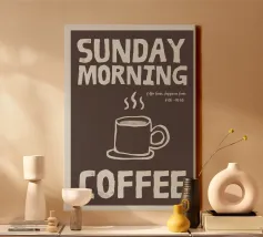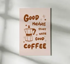 Ce design typographique rétro et tendance capture l'ambiance idéale pour bien commencer la journée : café et bonne énergie. Parfait pour les amateurs de café ou tous ceux qui ont besoin d'un coup de pouce positif le matin.