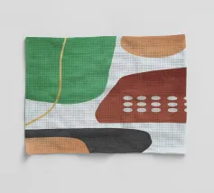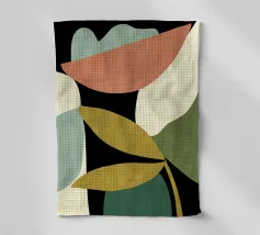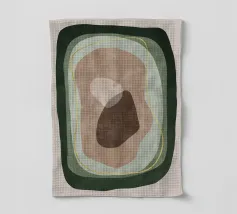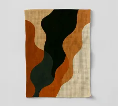 Des formes abstraites dans des tons terreux créent une composition harmonieuse avec des formes fluides et des contrastes audacieux. Des courbes organiques et des taches d'ocre, de brun et d'olive constituent le motif central.