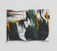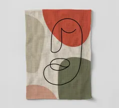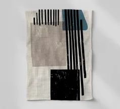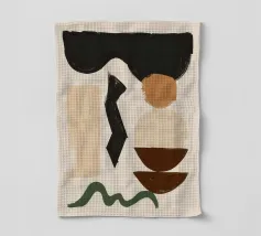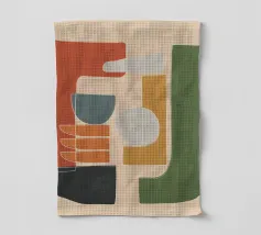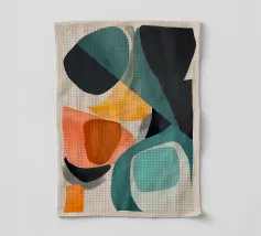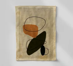 Des formes abstraites et des lignes audacieuses se fondent dans un équilibre de couleurs sourdes, créant une composition dynamique. Les formes organiques s'entrelacent, tandis que les éclaboussures de vert ajoutent de la profondeur et du mouvement.