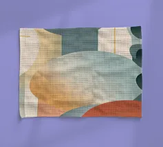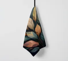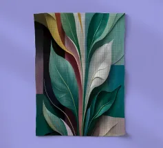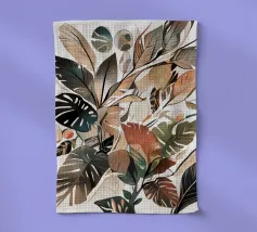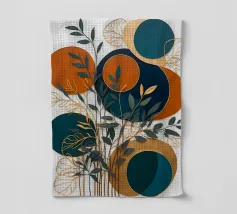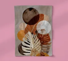 Une composition vibrante et abstraite composée de feuilles colorées, de fleurs délicates et de formes douces et organiques dans un mélange harmonieux de teintes automnales.